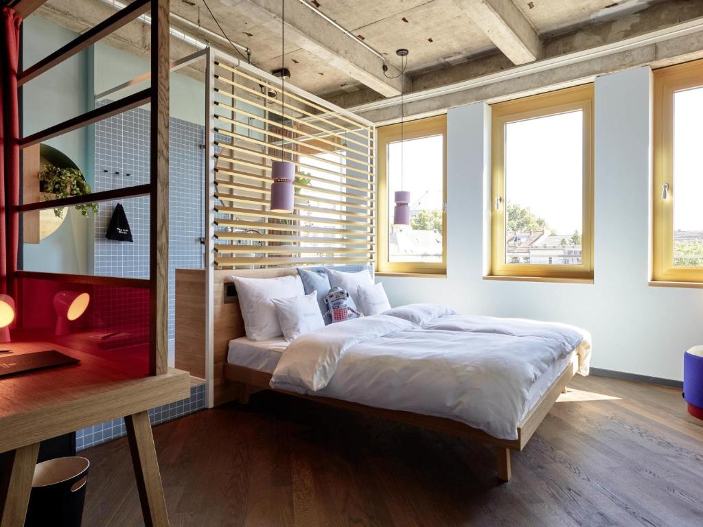 Diseñado por Werner Aisslinger, el hotel adopta una estética retrofuturista y posmodernista de Alemania Occidental, con tonos pastel y formas redondeadas. Las habitaciones van desde las de tamaño mediano hasta las gigantes, todas ellas equipadas con duchas de efecto lluvia, altavoces Bluetooth y televisores inteligentes, combinando el encanto nostálgico con las comodidades modernas para cautivar a los viajeros de hoy en día.