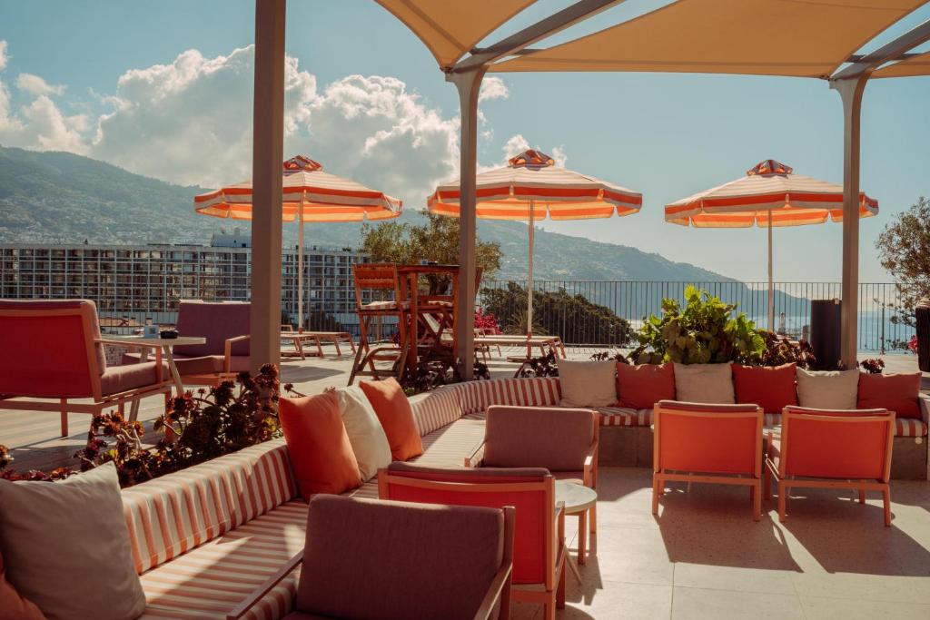 Situada sobre el animado puerto de Funchal, la azotea es el punto fuerte, con tumbonas, vegetación y una piscina infinita de agua salada. Los huéspedes pueden relajarse entre partida y partida de ping-pong mientras disfrutan de platos como tacos y hamburguesas de wagyu.